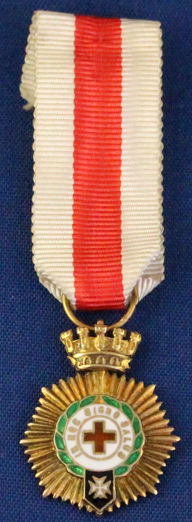 de oro, en anverso, centro circular con cruz roja sobre fondo blanco con la inscripcion