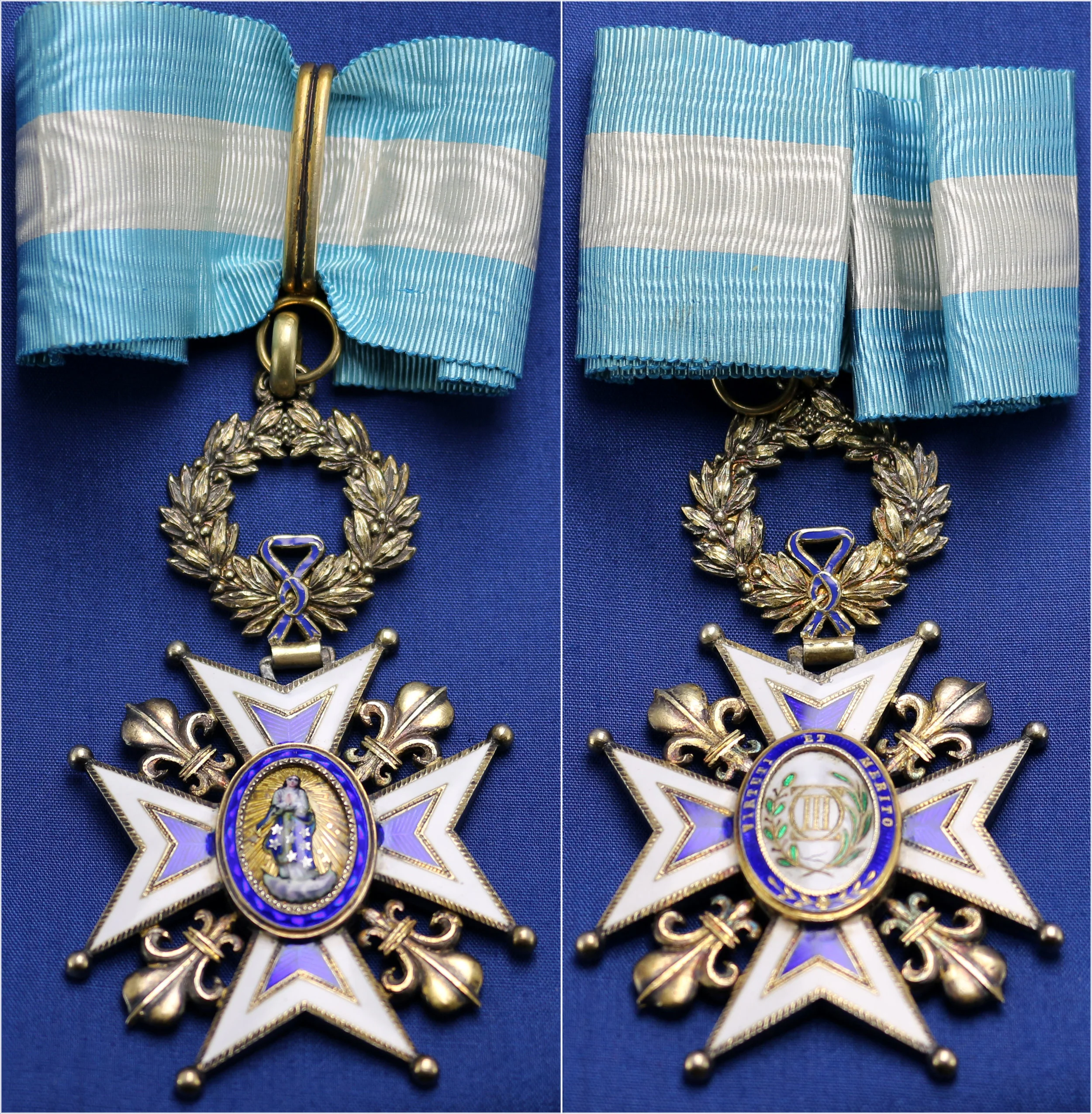 Comendador Ordinario : Cruz de cuello con brazos esmaltados en Azul con filete blanco,