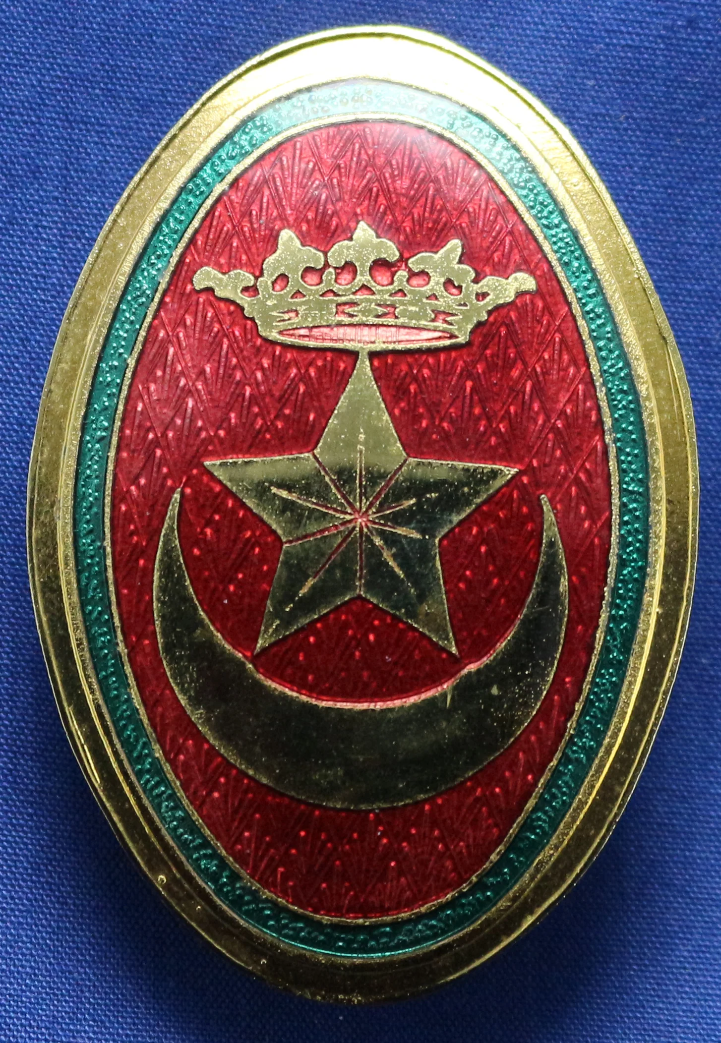 con bandera y trofeos militares, corona mural en oro.